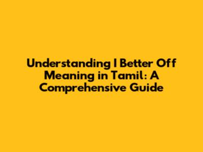 Hey guys! Ever stumbled upon the phrase "I better off" and wondered what it means, especially when translated into Tamil? Well, you're in luck! This guide breaks down the meaning of "I better off" and how it translates to Tamil, providing you with a clear understanding and some cool examples. We'll dive deep, so you can confidently use this phrase in your conversations. So, buckle up, and let's get started!