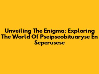 Unveiling The Enigma: Exploring The World Of Pseipseobituaryse En Seperusese