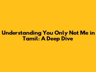 Hey guys! Ever stumbled upon the phrase "You Only Not Me" and wondered what it means in Tamil? Well, you're in the right place! We're gonna break down the meaning, explore its nuances, and even see how it's used in everyday Tamil conversations. So, grab a cup of coffee, and let's get started on this linguistic adventure! This phrase, while simple, carries a weight of emotion and intent that's worth exploring. It's not just a translation; it's an insight into the Tamil mindset and how people express their feelings. We'll look at the different ways this phrase can be translated, the contexts where it's most relevant, and some examples to help you grasp it completely. Ready to unlock the secrets behind "You Only Not Me" in Tamil? Let's dive in and unravel this interesting phrase, shall we?