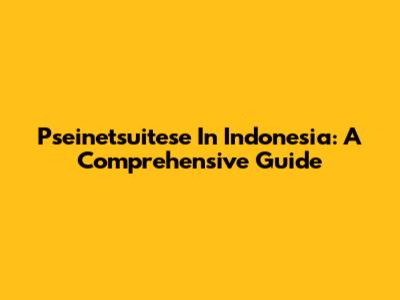 Pseinetsuitese In Indonesia: A Comprehensive Guide