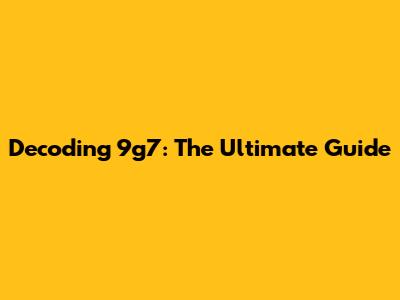 Decoding 9g7: The Ultimate Guide