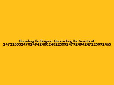 Hey there, code enthusiasts and curious minds! Ever stumbled upon a sequence of numbers that looked like a secret code from a sci-fi movie? Well, if you've encountered the string 247225032470249424802482250924792494247225092465, you're in the right place! We're diving deep into this numerical puzzle to uncover its meaning. Let's break down 247225032470249424802482250924792494247225092465, exploring what it might represent and how to approach such enigmatic strings. It's like being a digital detective, so grab your magnifying glass (figuratively speaking, of course) and get ready to unravel the mystery. This isn't just about numbers; it's about understanding how information can be encoded and the fun of figuring it all out. So, let's get started and see what we can find.