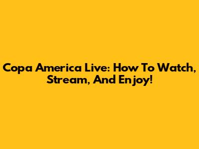 Copa America Live: How To Watch, Stream, And Enjoy!