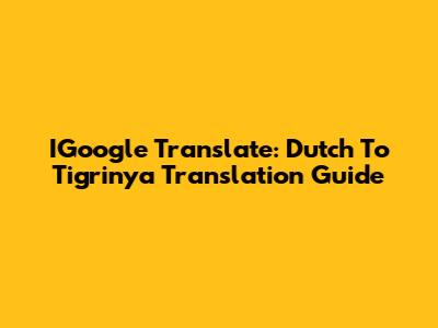IGoogle Translate: Dutch To Tigrinya Translation Guide