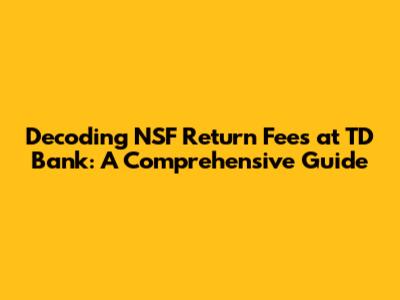Hey there, finance folks! Ever get hit with a fee and had absolutely no clue what it meant? We've all been there, right? Today, we're diving deep into something that might have popped up on your TD Bank statement: the dreaded NSF return fee. "NSF" – that’s short for Non-Sufficient Funds, meaning you tried to make a payment, but your account didn't have enough dough to cover it. And, "return fee"? Well, that's the price you pay for that little financial hiccup. But what exactly does it all mean, and how can you navigate these fees like a pro? Let's break it down, TD Bank style! We'll explore the ins and outs of NSF fees, how they work at TD Bank, and, most importantly, how to potentially avoid them. Buckle up, and let's get into the nitty-gritty of NSF return fees at TD, so you can manage your money with confidence and maybe even impress your friends with your newfound financial wisdom! We’re going to cover everything from the basic definitions to specific examples and tips, making sure you're well-equipped to handle any NSF situation that comes your way. Get ready to level up your financial knowledge, guys!