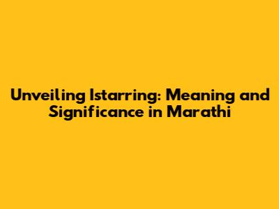 Hey guys! Ever stumbled upon the word "istarring" and wondered what it meant, especially if you're a Marathi speaker or just curious about the language? Well, you're in the right place! In this article, we're going to dive deep into the meaning of "istarring" in Marathi, exploring its nuances, usage, and how it fits into the vibrant world of Marathi cinema and beyond. Buckle up, because we're about to embark on a linguistic adventure!