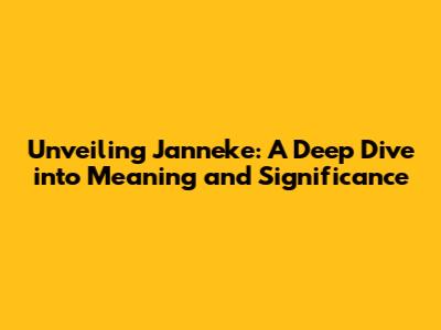 The Cultural Impact of Janneke: Beyond the Name Itself