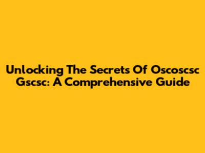 Unlocking The Secrets Of Oscoscsc Gscsc: A Comprehensive Guide
