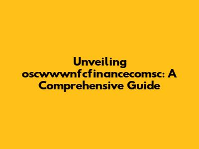 Unveiling Oscwwwnfcfinancecomsc: A Comprehensive Guide