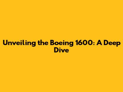 Hey everyone! Ever heard of the Boeing 1600? It's not exactly a household name, but it's got a fascinating story. Today, we're diving deep into the world of this unique aircraft – exploring its history, what made it tick, and the challenges of keeping it flying. Let's get started, shall we?