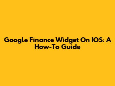 Google Finance Widget On IOS: A How-To Guide