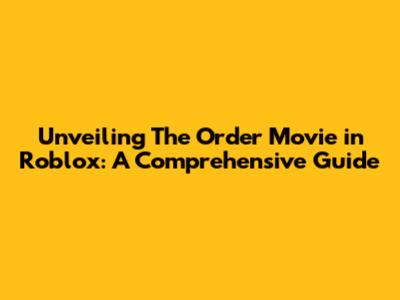 What Exactly is The Order Movie in Roblox?