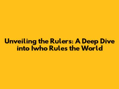 Hey everyone! Ever found yourself pondering, who truly rules the world? It's a question that has sparked countless debates, fueled philosophical discussions, and even ignited wars. The answer, as you might suspect, isn't straightforward. And that's where the captivating world of "Iwho Rules the World" comes in. This isn't just a simple query; it's a journey into the complex layers of power, influence, and the forces that shape our global landscape. If you are here, let's explore the multifaceted aspects of global governance and the individuals, organizations, and systems that hold sway. Buckle up, because we're about to embark on an intellectual adventure!