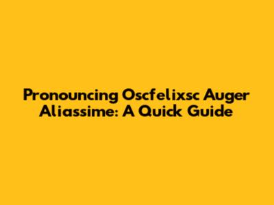Pronouncing Oscfelixsc Auger Aliassime: A Quick Guide