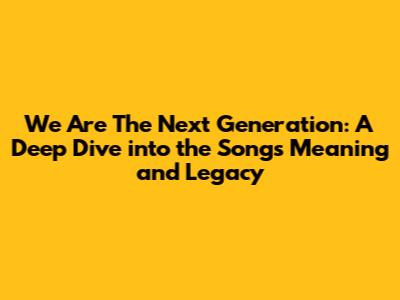 Hey guys! Ever heard a song that just grabs you? Makes you wanna sing along, maybe even tear up a little? Well, there's a song out there that does just that for a whole lot of people: "We Are The Next Generation." Today, we're gonna dive deep into this awesome tune. We'll be checking out what makes it tick, what it means, and why it still resonates with so many of us. So, buckle up, and let's get started on this musical journey!