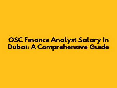 OSC Finance Analyst Salary In Dubai: A Comprehensive Guide