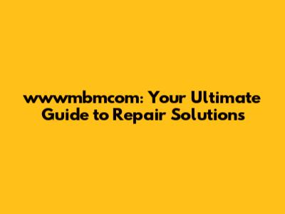 Wwwmbmcom: Your Ultimate Guide To Repair Solutions